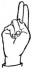 На ћирилици написано БЛАЖА ИВОВИЋ састоји се из 11 слова [?]. Исписано ћириличном једноручном азбуком за глувонеме: